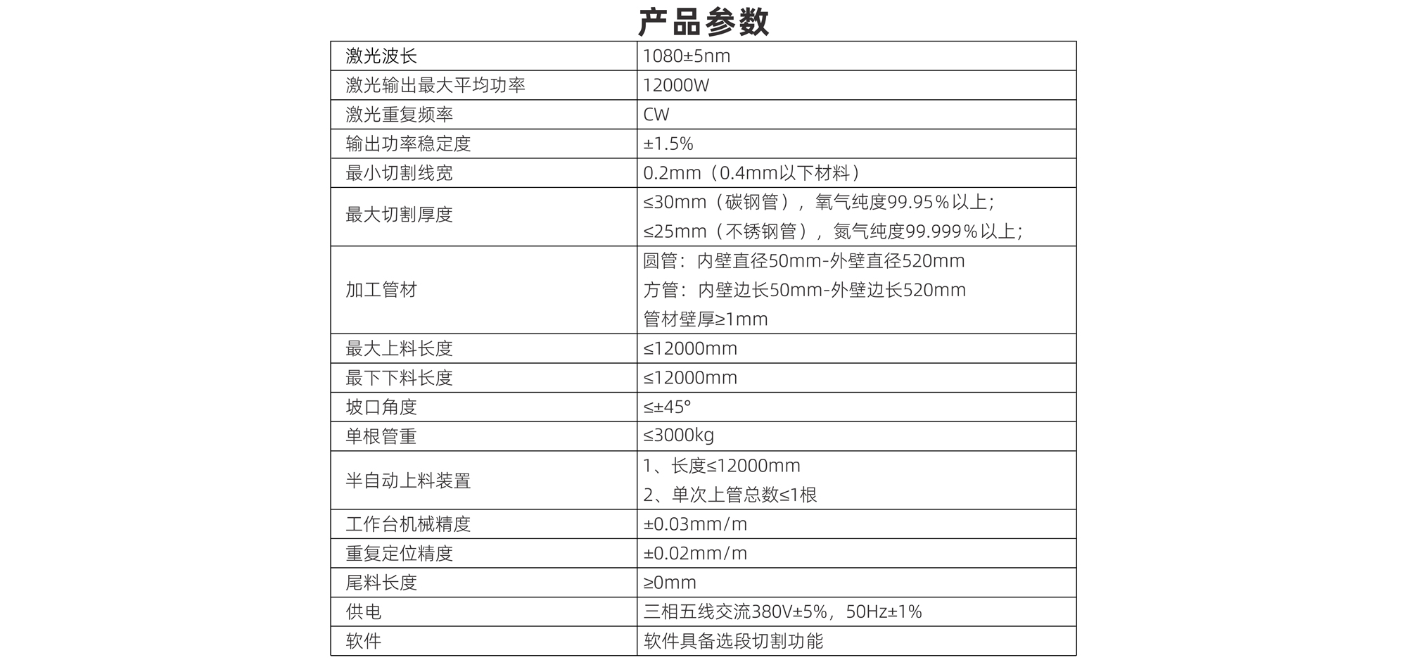 | 半自動上料裝置 | 1.長度≤12000mm 2.單次上管總數(shù)≤1根 |