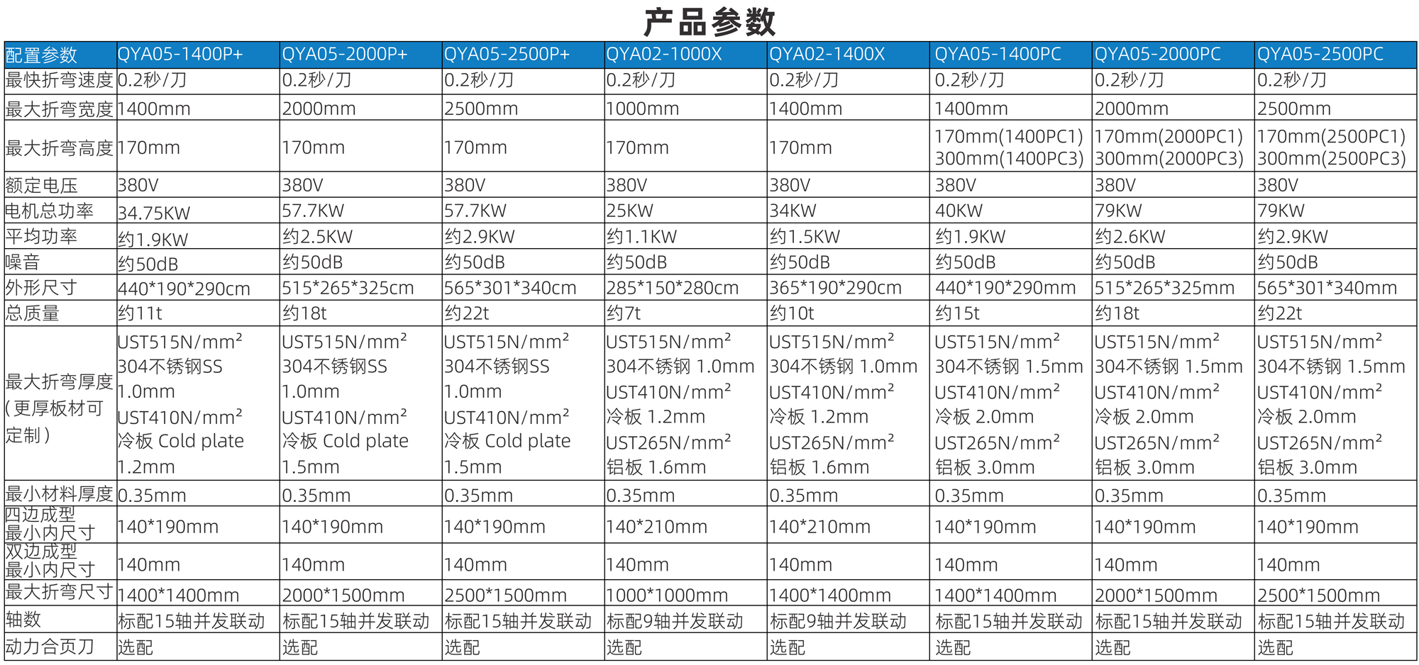 | 配置參數(shù) | QYA05-1400P+ | OYA05-2000P+ | OYA05-2500P+ | OYA02-1000X | OYA02-1400X | OYA05-1400PC | OYA05-2000PC | OYA05-2500PC |